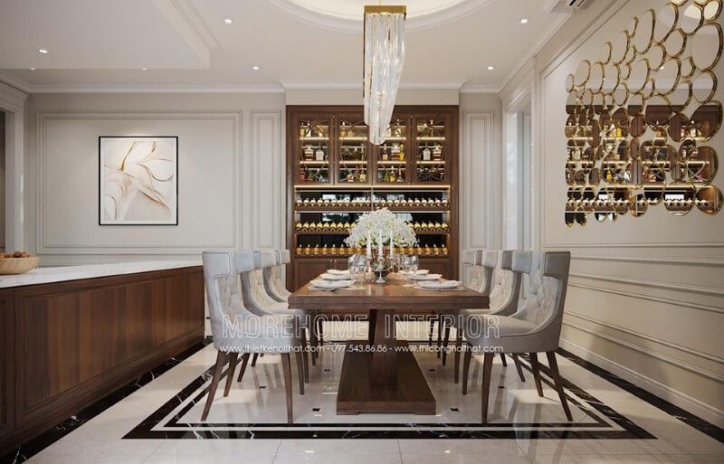 Mẫu bàn ăn tân cổ điển là điểm nhấn cho phòng ăn sang trọng, đẳng cấp