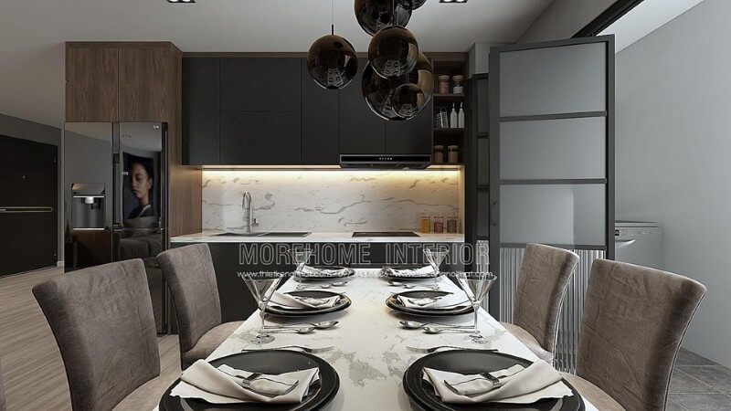 Thiết kế nội thất phòng bếp chung cư hiện đại, đơn giản và tiện nghi