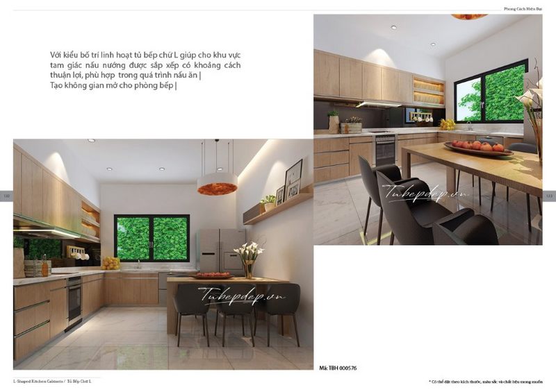 Mẫu thiết kế phòng bếp với nội thất gỗ tự nhiên phối đá nhân tạo cao cấp ** Nói về thiết kế: mô tả thêm về phong cách.
