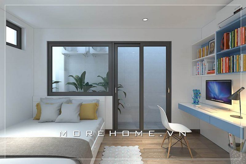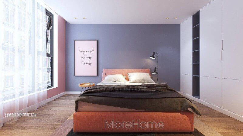 Mẫu phòng ngủ có cửa sổ lớn đón ánh sáng tự nhiên với chiếc giường màu sắc sáng trẻ trung năng động rất ấn tượng.