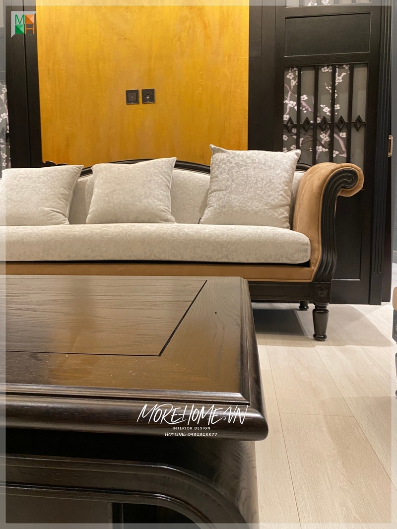 Sofa phòng khách biệt thự gỗ tự nhiên với độ chắc chắn cao, có khả năng chịu lực tốt và có khả năng uốn cong tốt, đây làm sản phẩm tuyệt vời dành cho gia chủ