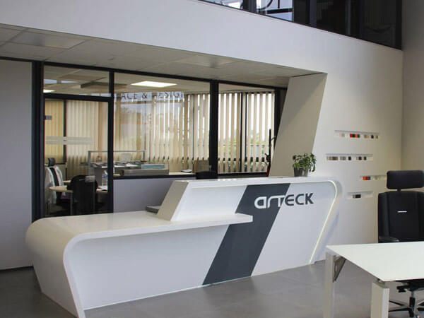 Quầy lễ tân đá nhân tạo với ưu điểm uốn cong vượt trội tạo được nhiều hình dáng phù hợp với mong muốn và không gian mang tới sự thoải mái tiện nghi và mang lại thẩm mỹ cao