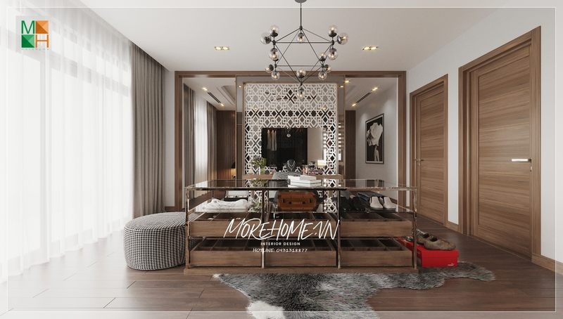 Mang cả sự tiện nghi và ấn tượng đến với không gian sống của gia đình với mẫu thiết kế phòng thay đồ hiện đại, sang trọng.