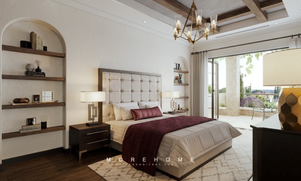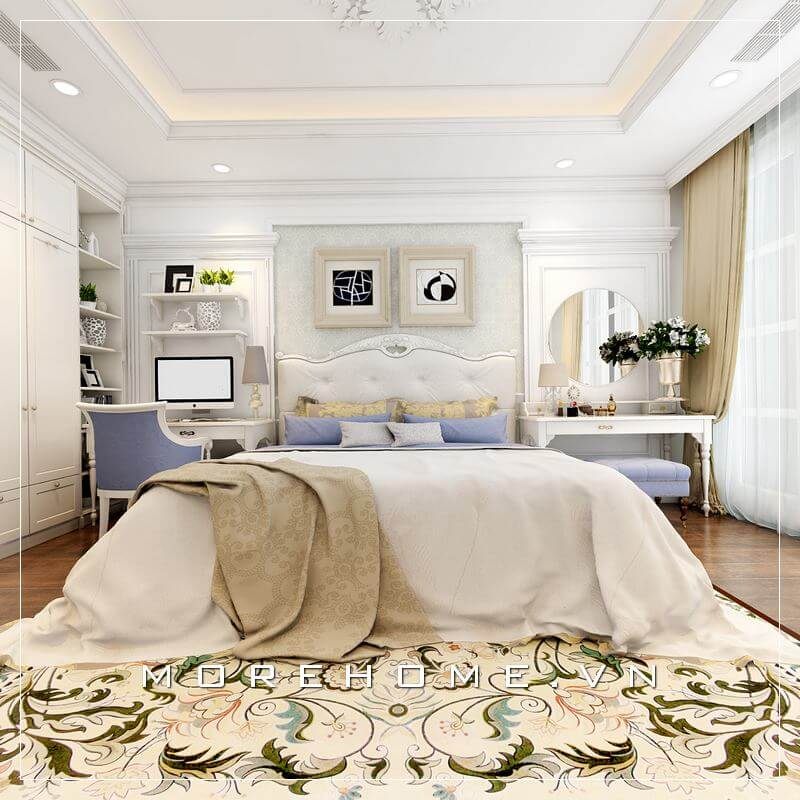 Thiết kế phòng ngủ trong căn hộ cao cấp theo phong cách tân cổ điển để tạo nên sự sang trọng.
