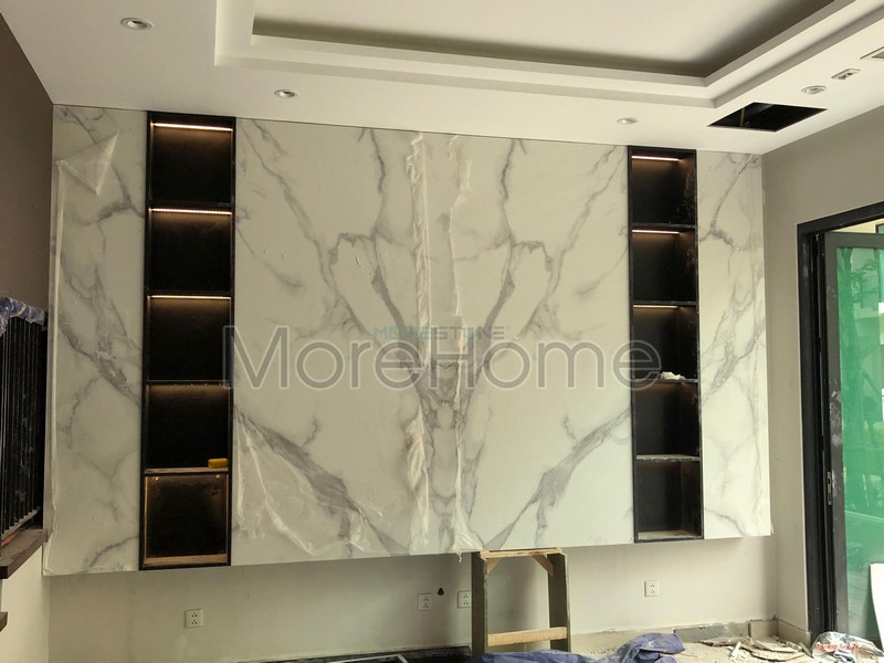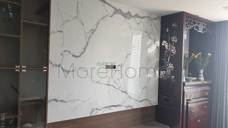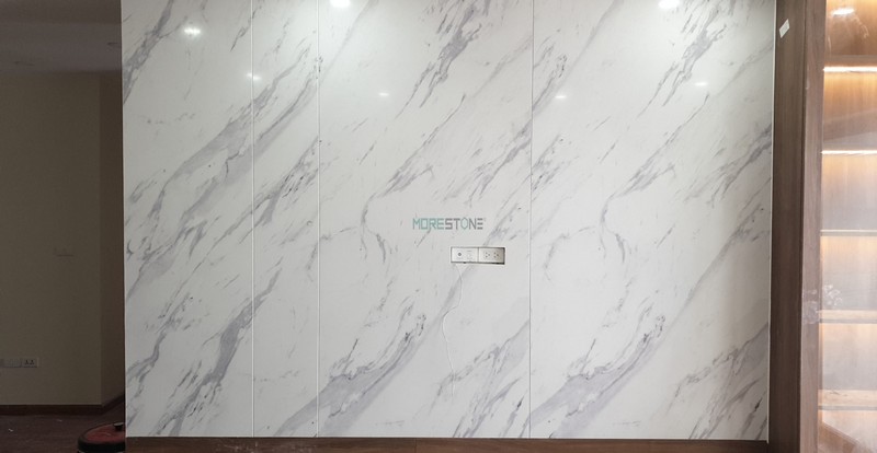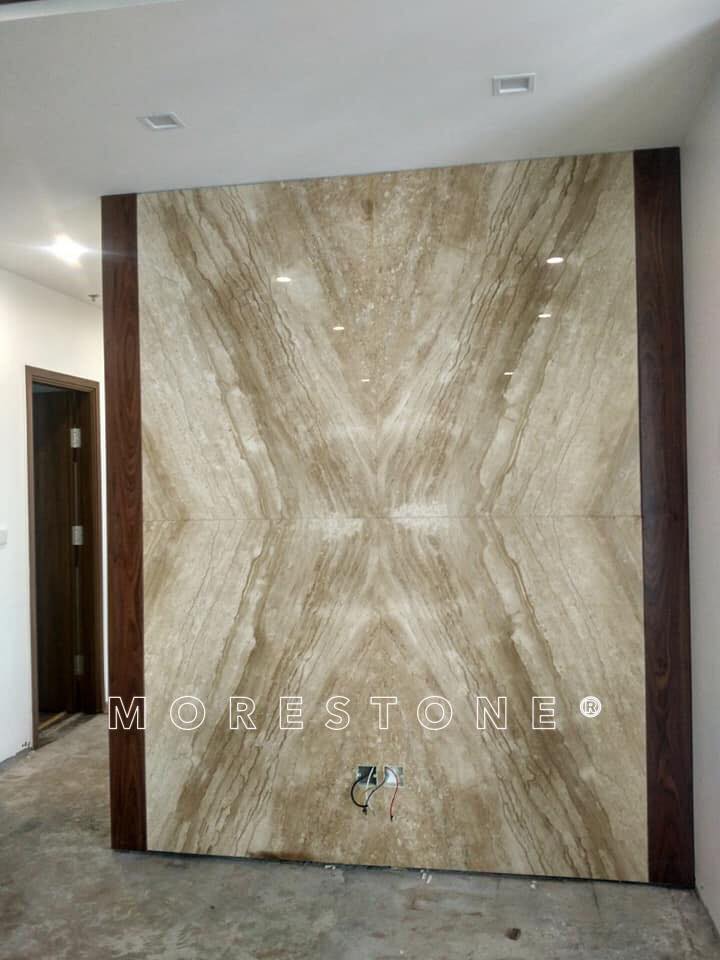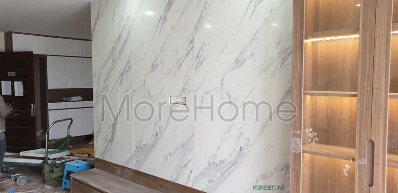 Ngoài ra kích thước khổ đá cũng lớn hơn so với đá tự nhiên cho nên khi sử dụng đá marble ốp tường phòng khách có thể hạn chế được các mạch ghép mang lại giá trị thẩm mỹ cao hơn cho các bức tường.