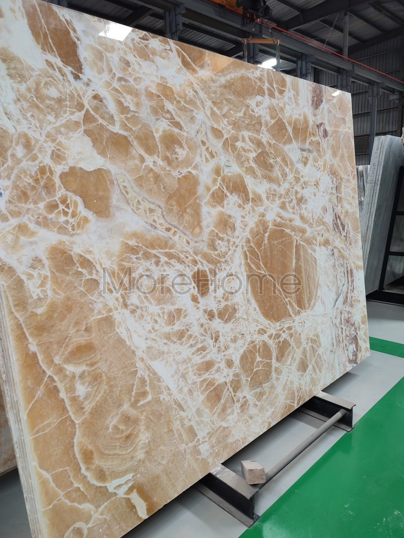 Bạn có thể dùng đá onyx để tạo thành những bức tranh đá sống động trên tường cùng với việc kết hợp các loại đèn trang trí như đèn chiếu rọi, đèn hắt… tạo nên sự hiện đại, trang trọng.