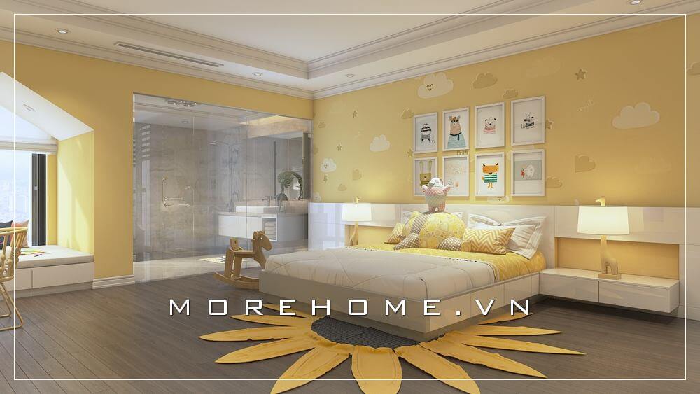 Lựa chọn giường ngủ hiện đại cho phòng ngủ trẻ em, sự kết hợp hoàn hảo giữa ngăn kéo phía dưới mang lại cho căn phòng thêm rộng thoáng và gọn gàng hơn