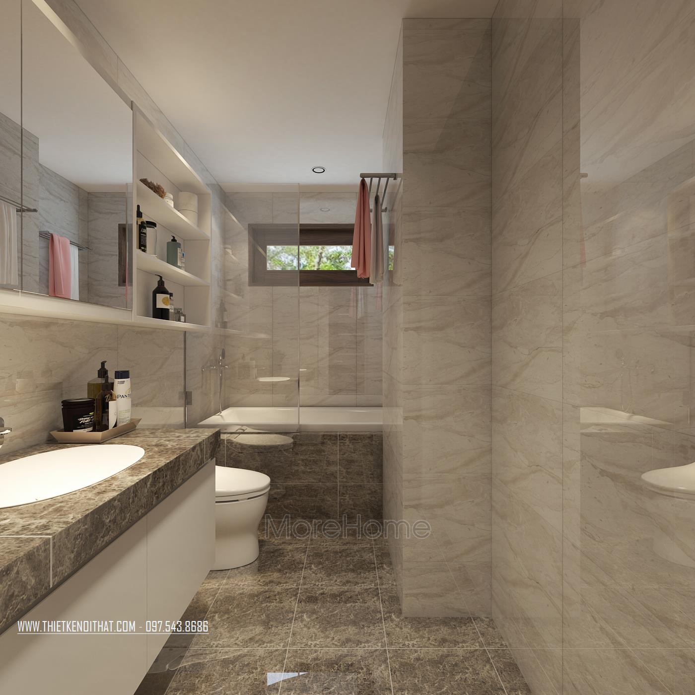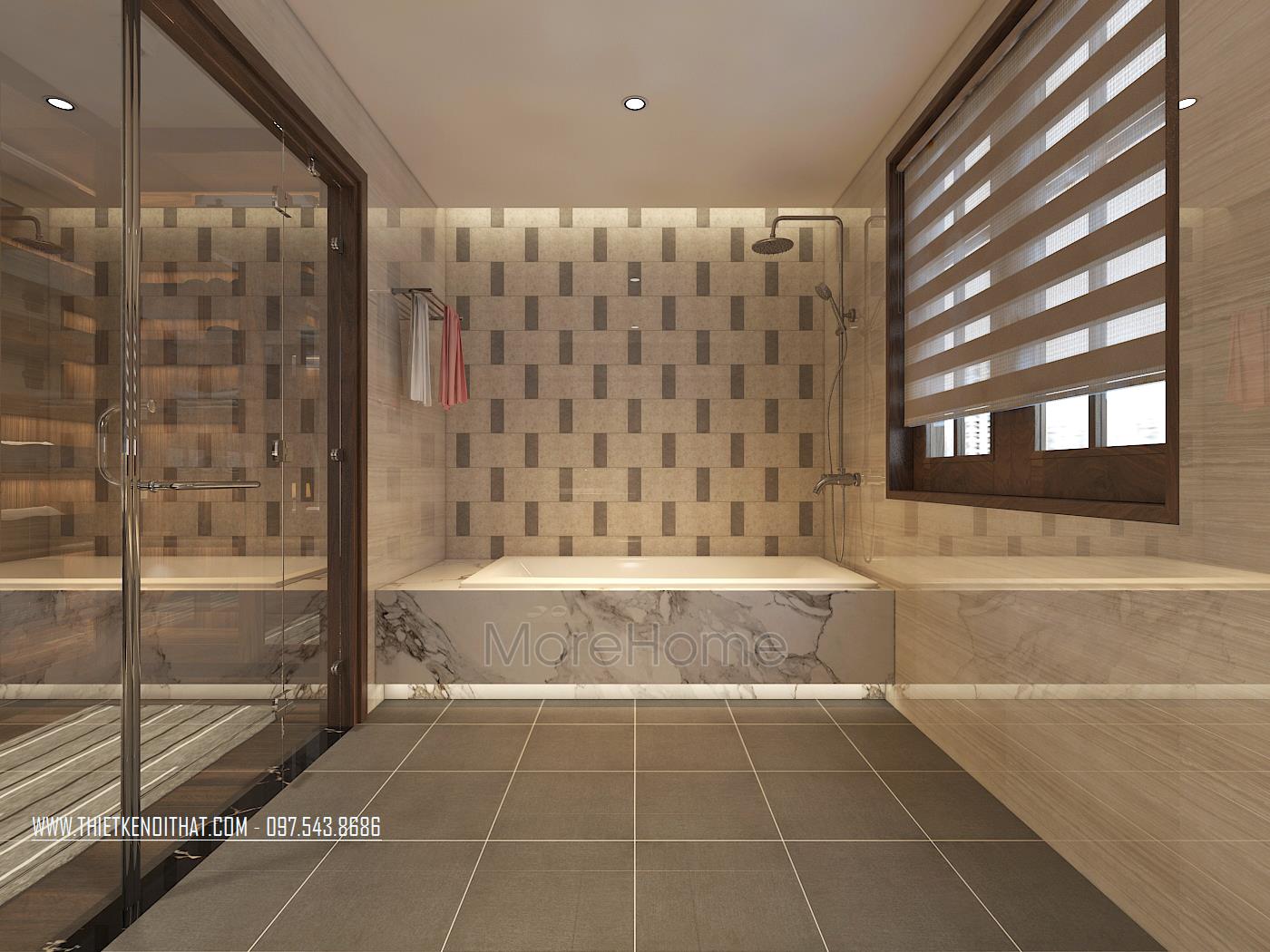 Đá ốp nhà tắm trong biệt thự gỗ óc chó An Hưng - Hà Nội